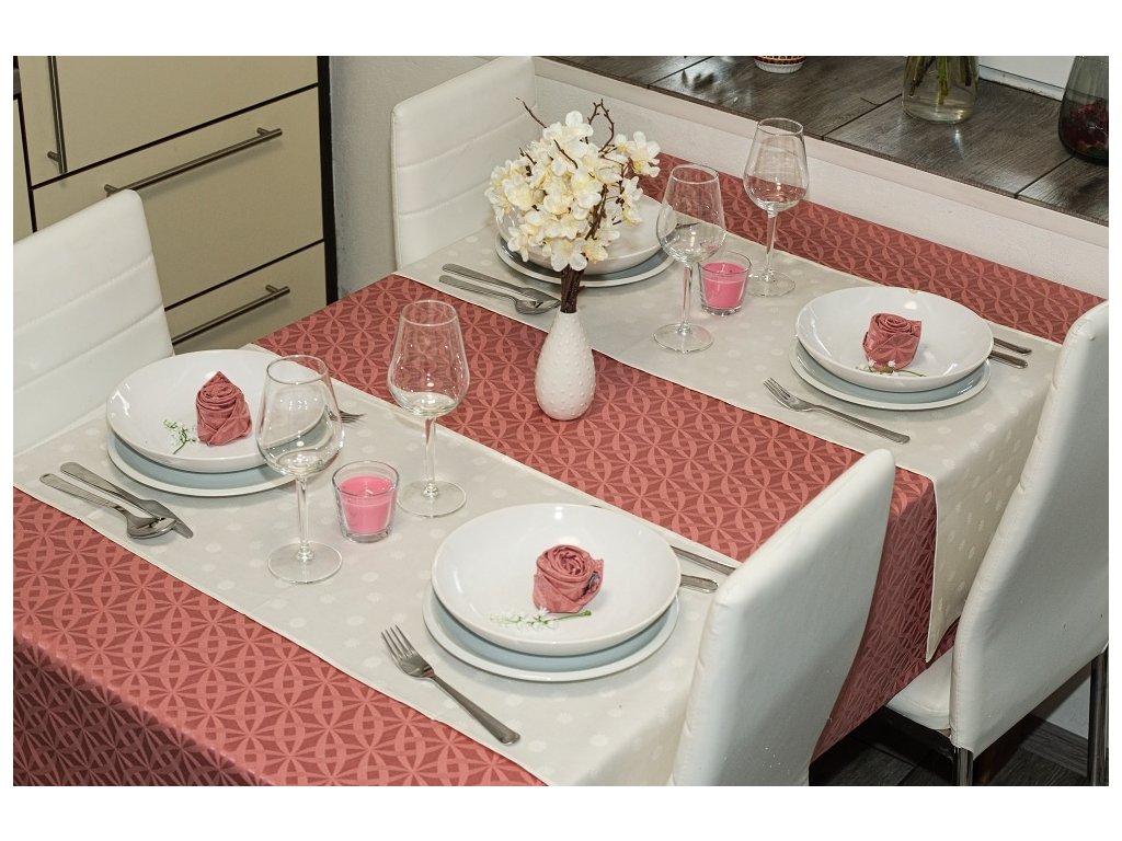Kvalitní žakárský ubrus Odaska s vytkaným geometrickým vzorem - pro slavnostní tabule i pro klidné posezení. Tento dezén nabízíme v různých velikostech a provedeních. Ubrusy dodáváme i s nešpinavou voděodolnou úpravou "Teflon". Rozlitou vodu či kávu stačí jen odsát ubrouskem.