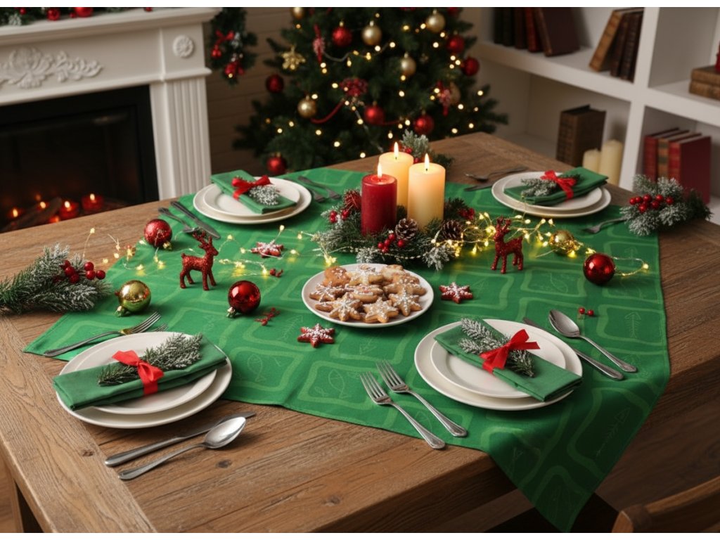 Luxusní žakárský ubrus s tkaným vzorem, který zpříjemní vaše vánoční stolování.