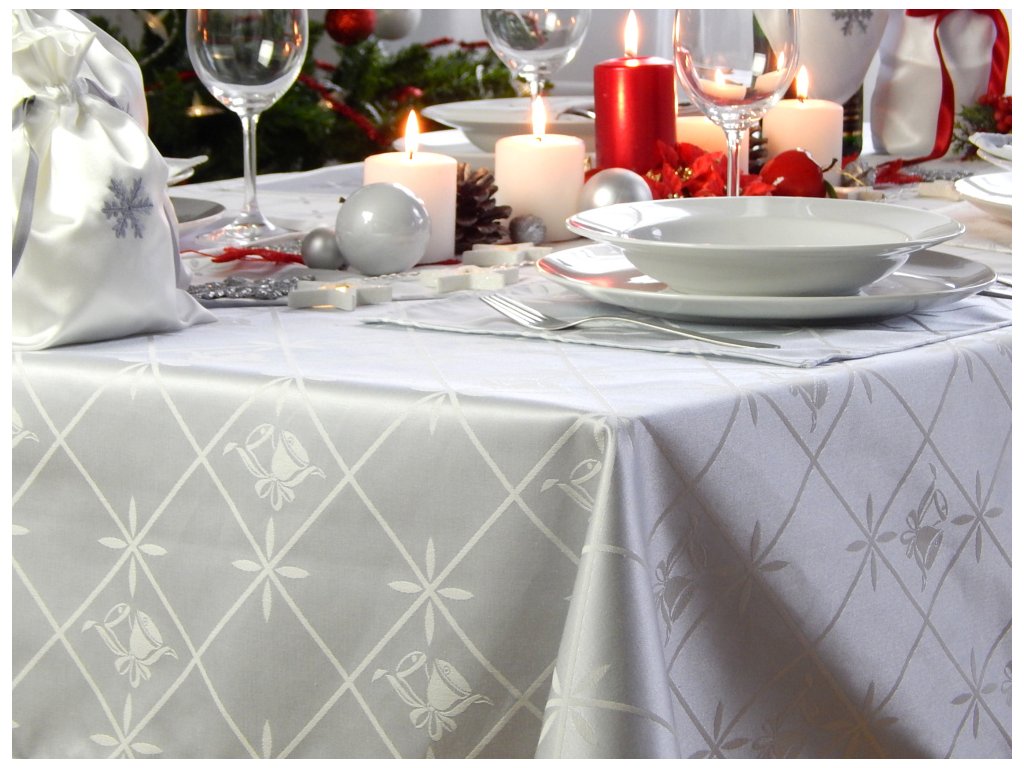 Krásný stříbrný, sváteční ubrus, kvalita, určitě letošní Vánoce rozzáří.
