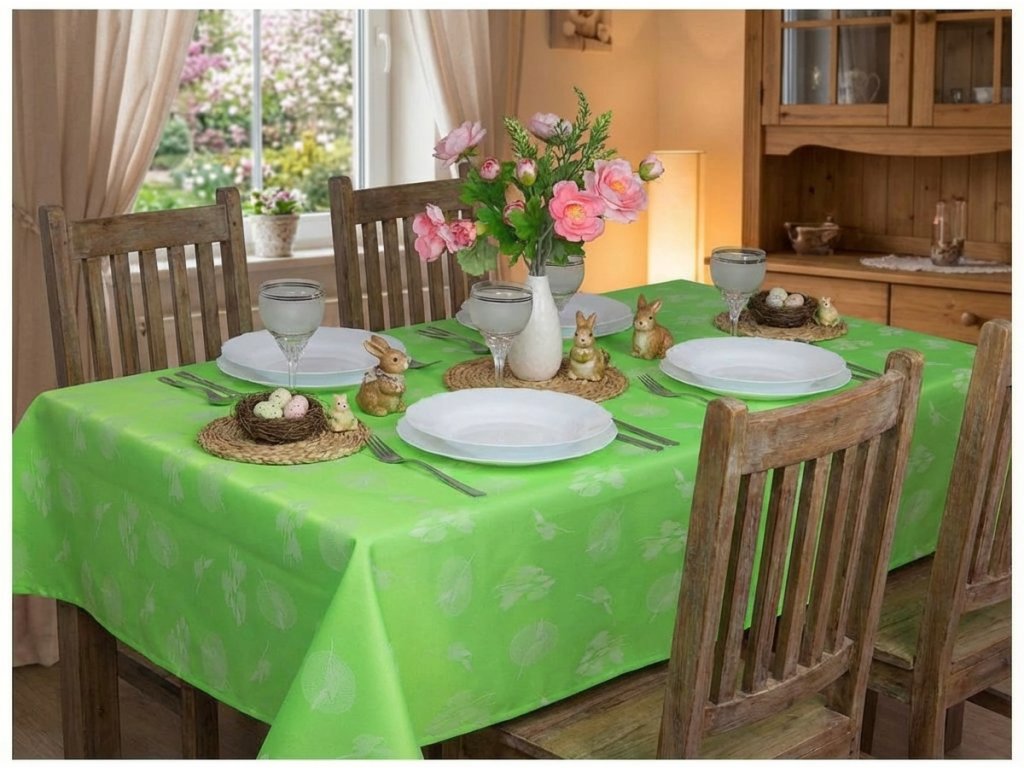 Nalaďte svůj domov do velikonočně jarní nálady za pomoci našeho ubrusu. Náš ubrus můžete používat po celé jaro a rozhodně se neomrzí. Teflonová úprava jej uchrání od každé tekuté katastrofy jako například rozlitým džusem, vínem či rajskou polévkou. Rozlijete-li nějakou tekutinu zachovejte klid, stačí ji odsát utěrkou.