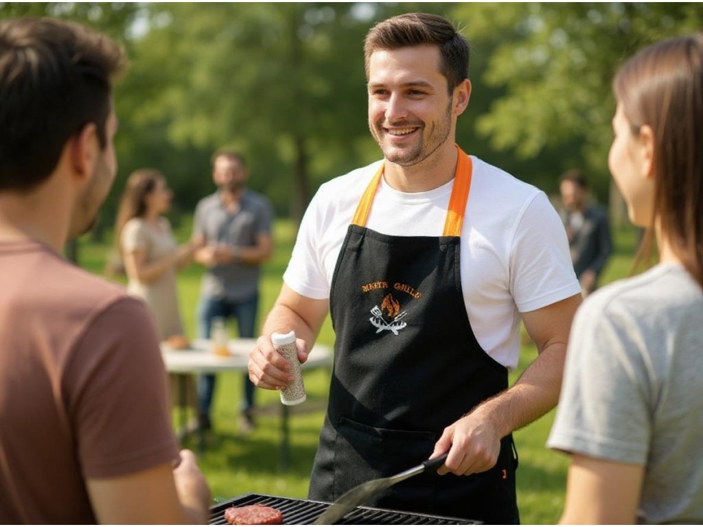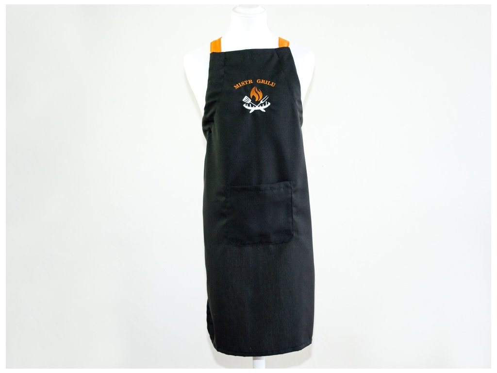 Zástěra s laclem a kapsou s výšivkou MISTR GRILU černá